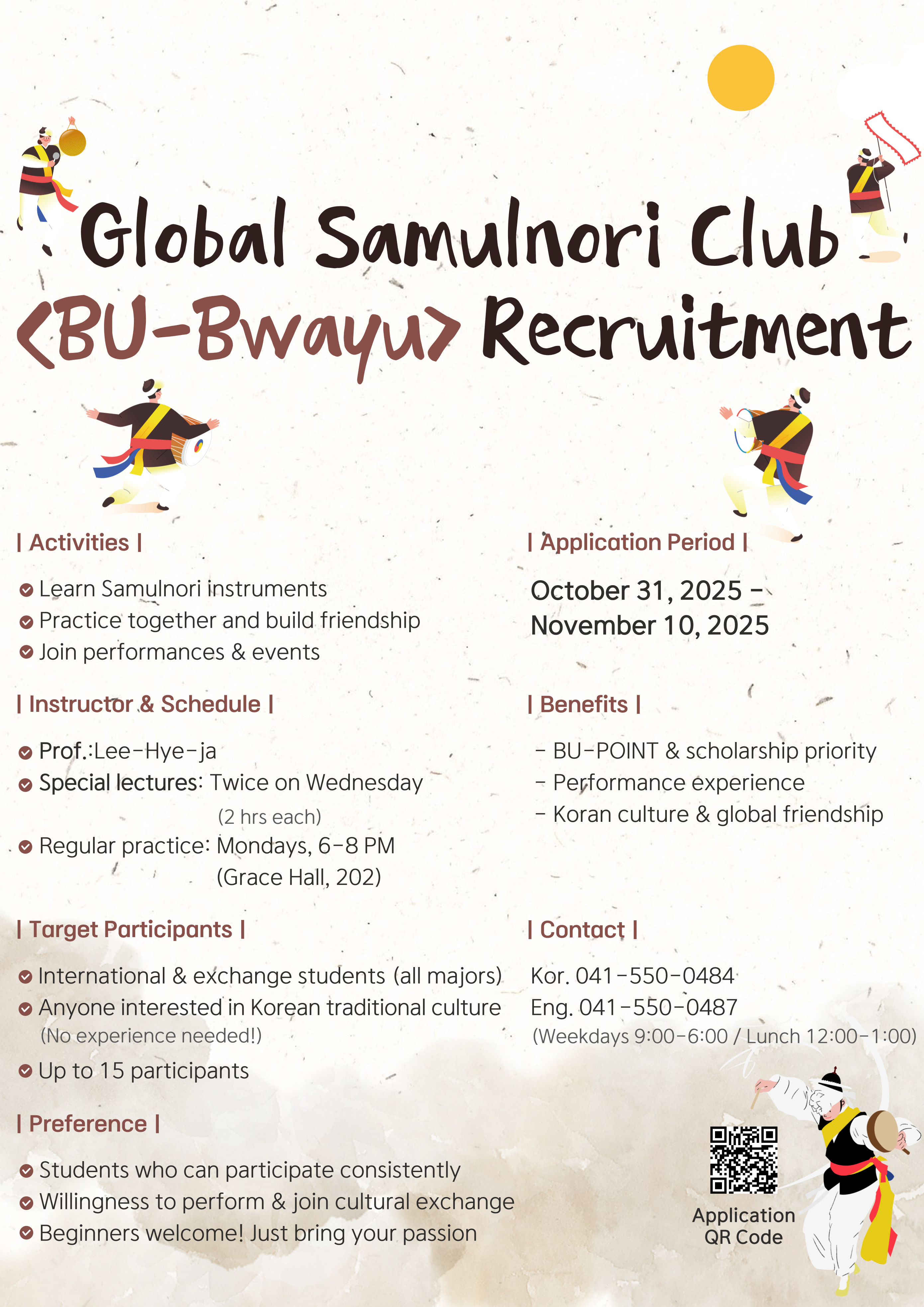 Come and unite through the rhythm of traditional Korean percussion! ‘BU Bwayu’ is a global Samulnori club