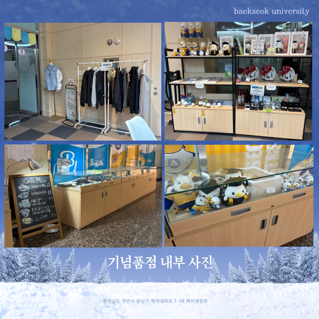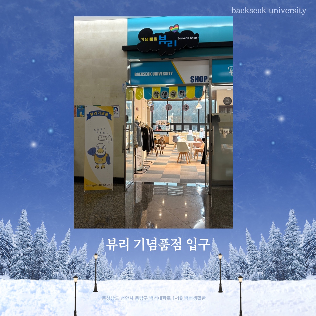 이곳에서는 학교 마스코트 '뷰리'와 '쀼리'가 담긴 다양한 굿즈를 만나볼 수 있어요.