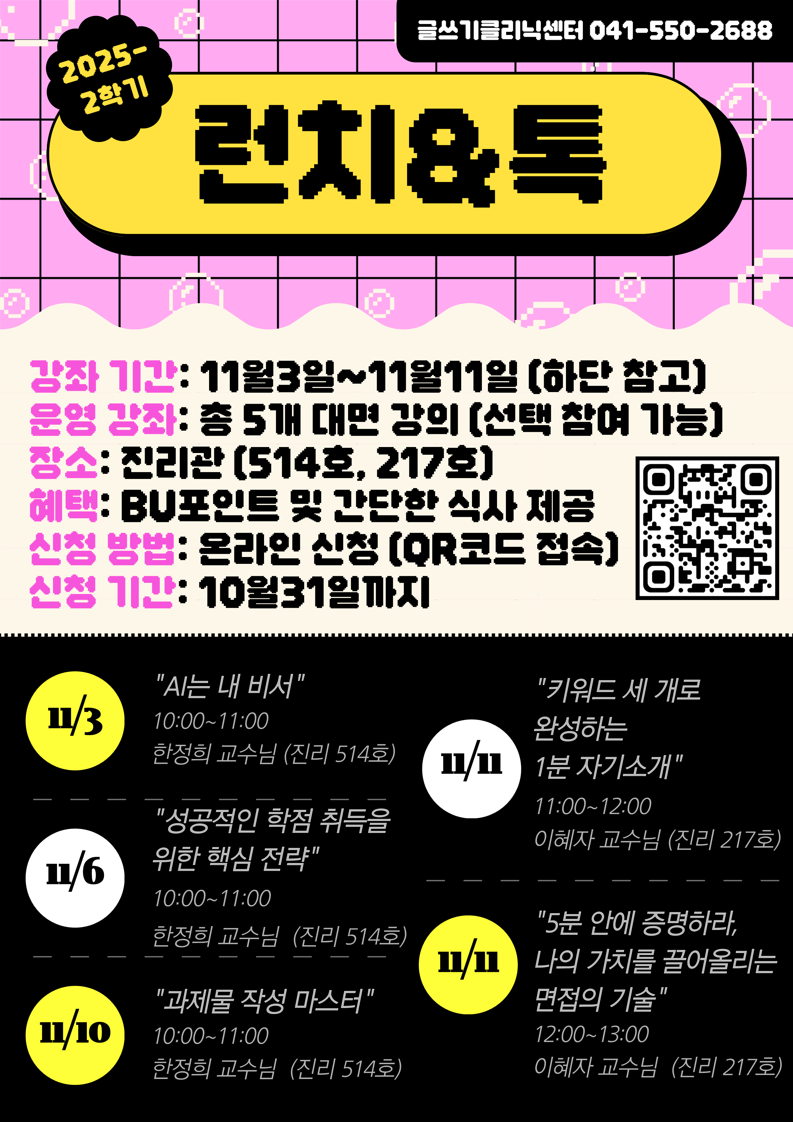 [글쓰기클리닉센터] 런치&톡 안내글쓰기클리닉센터 2025-10-17 15:01:19.0