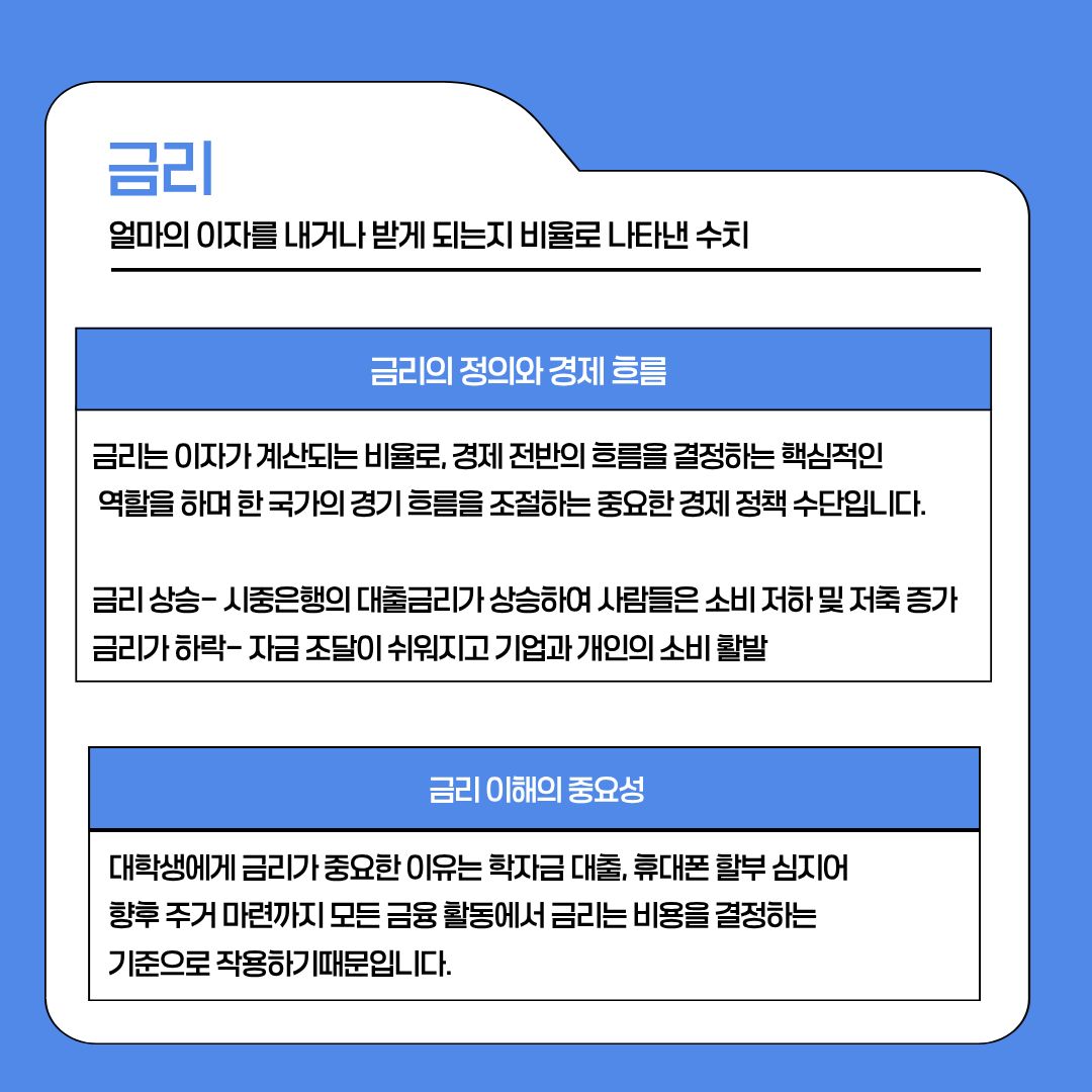 대학생에게 금리가 중요한 이유는 학자금 대출, 휴대폰 할부, 자동차 구매, 심지어 향후 주거 마련까지 모든 금융 활동에서 금리는 비용을 결정하는 기준으로 작용하기 때문입니다.