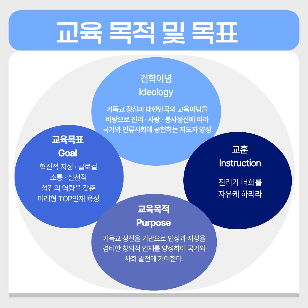 기독교 정신과 대한민국의 교육이념을 바탕으로 진리 · 사랑 · 봉사정신에 따라