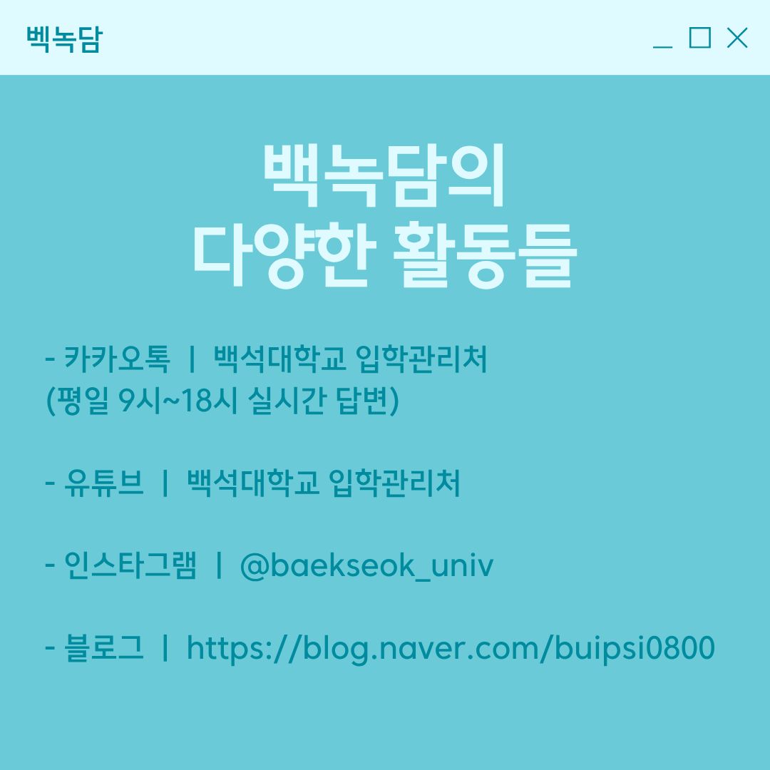 카카오톡 | 플러스친구 백석대학교 입학관리처